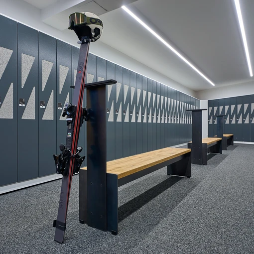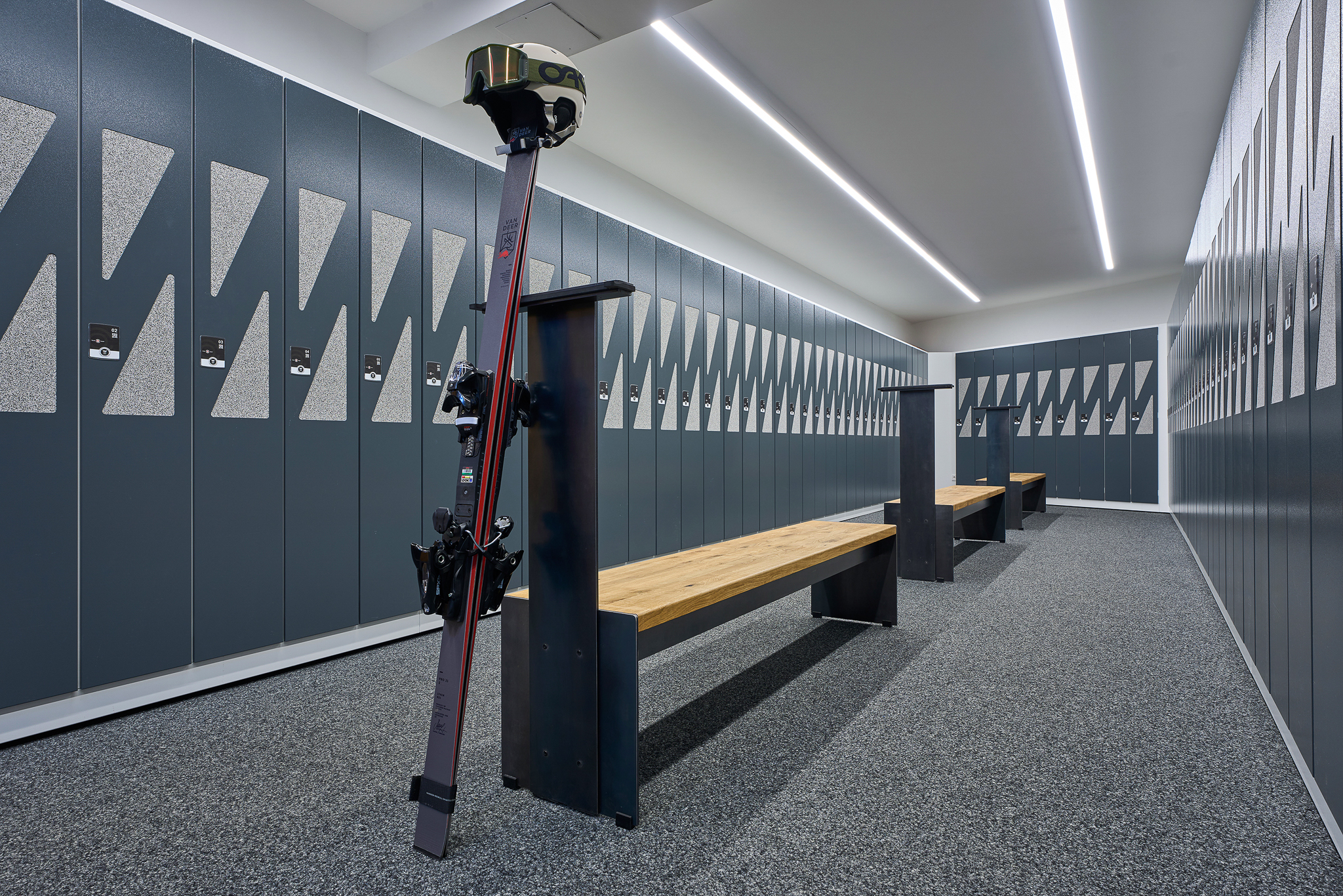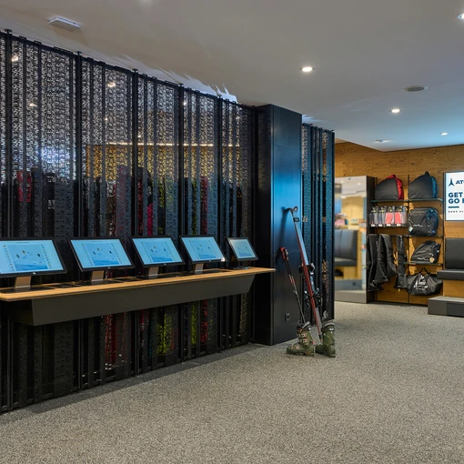 Das Interieur ist so konzipiert, dass es den hohen täglichen Anforderungen eines Skiverleihs mühelos standhält. Zugleich setzt es optisch auf natürliche, hochwertige und besonders langlebige Materialien.