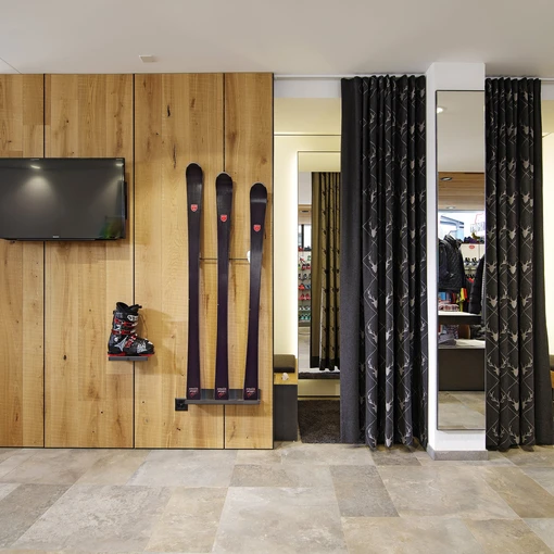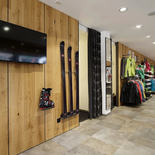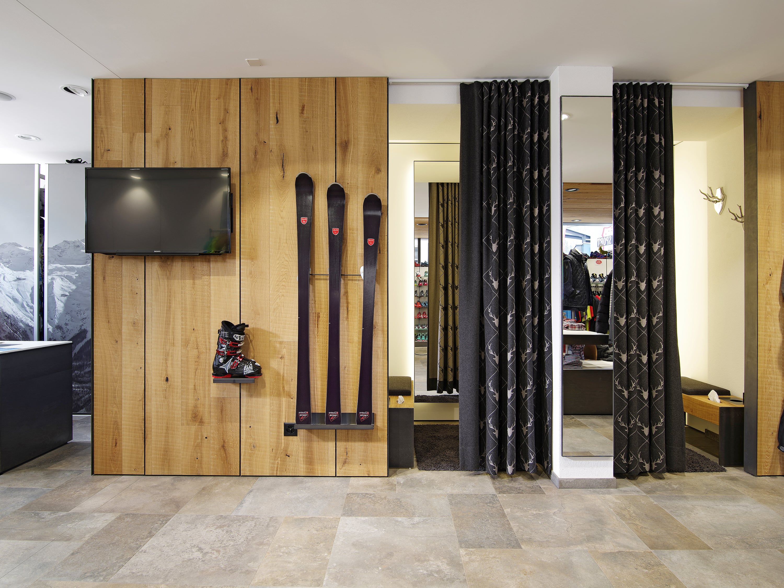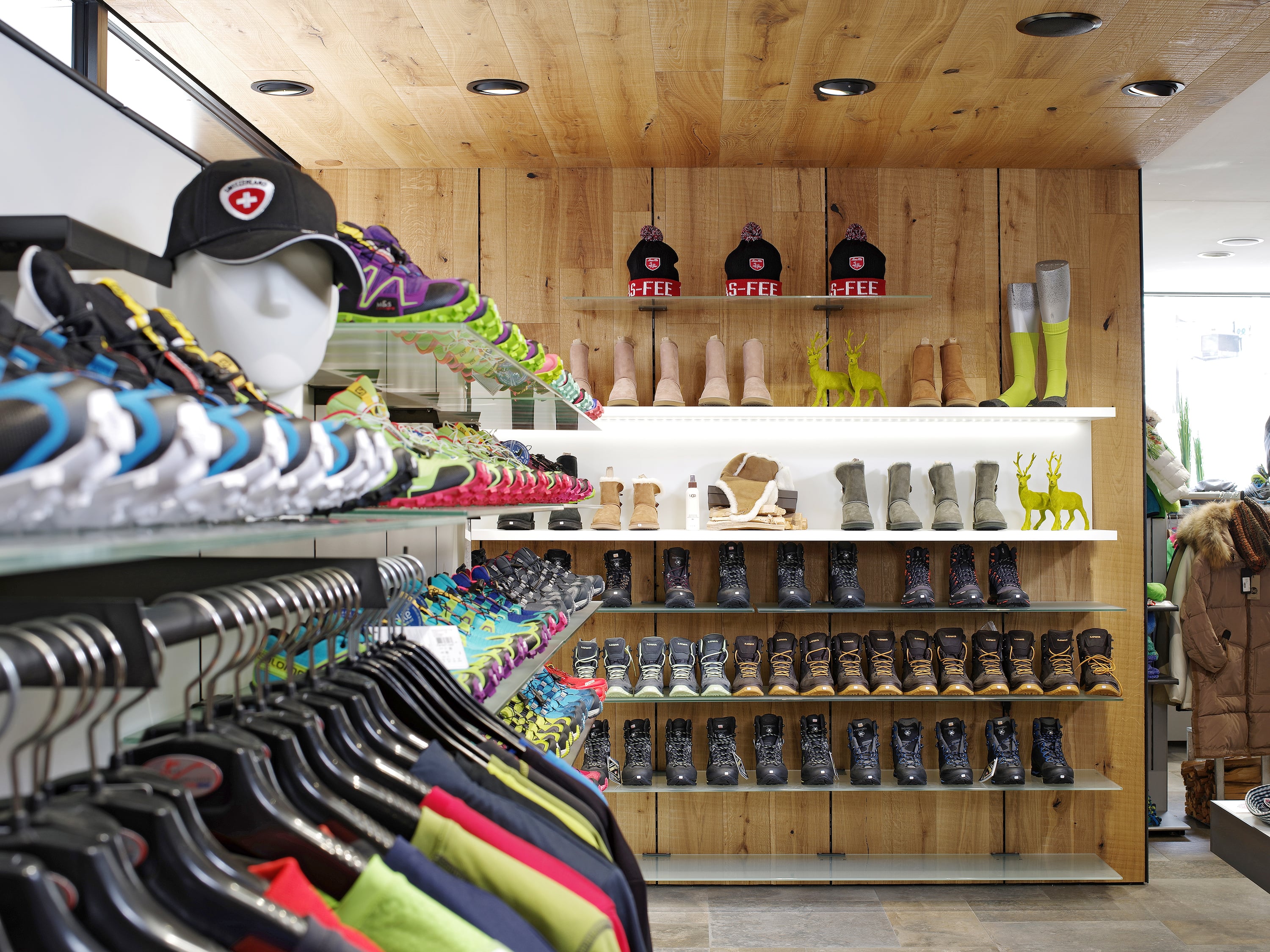 Referenz: Derby Sport | Wo: 3960 Saas Fee, Schweiz | Verkaufsfläche: 140m² | Leistungen: Planung, Produktion und Montage der Geschäftseinrichtung, Gewerke Ausschreibung, Planung und Begleitung