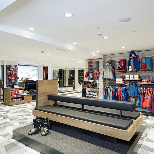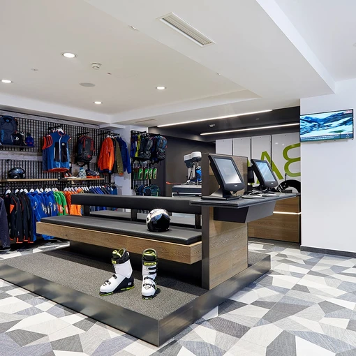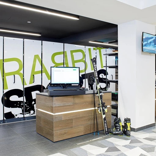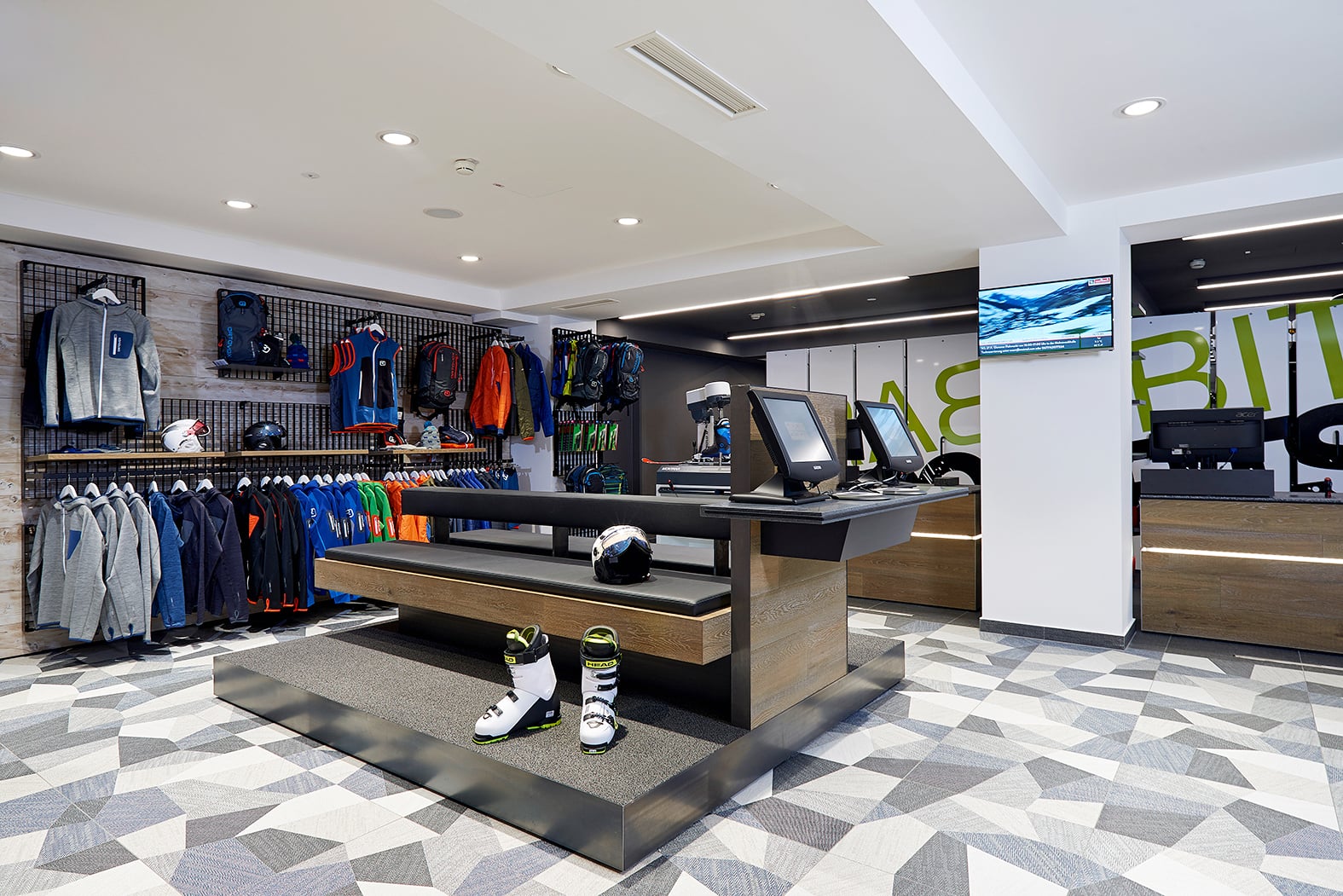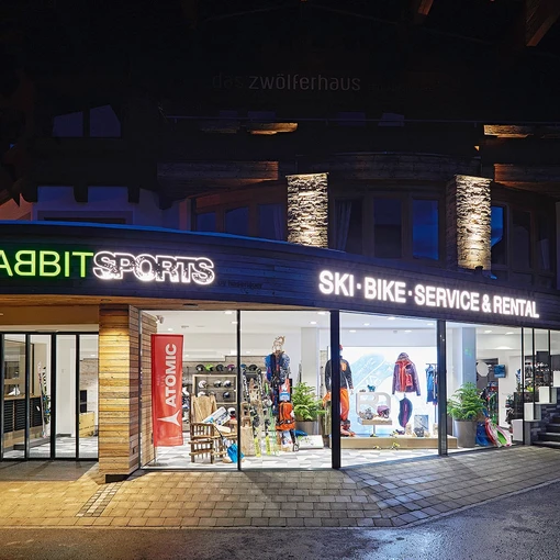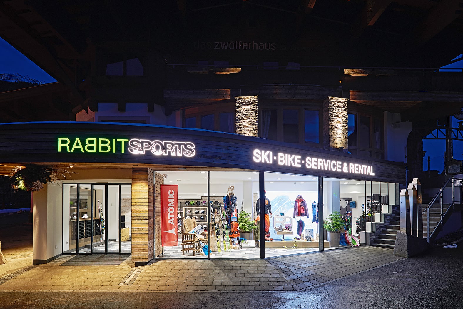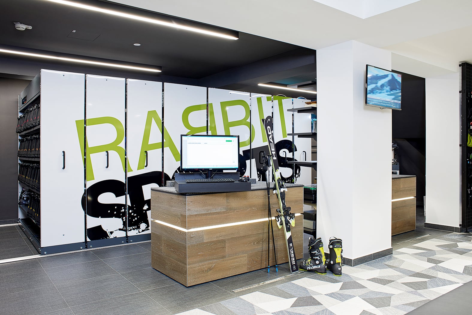 Referenz: Rabbit Sports | Wo: 5754 Hinterglemm, Österreich | Verkaufsfläche: 200 m² | Leistungen: Planung, Produktion und Montage der Geschäftseinrichtung, Gewerke Ausschreibung, Planung und Begleitung