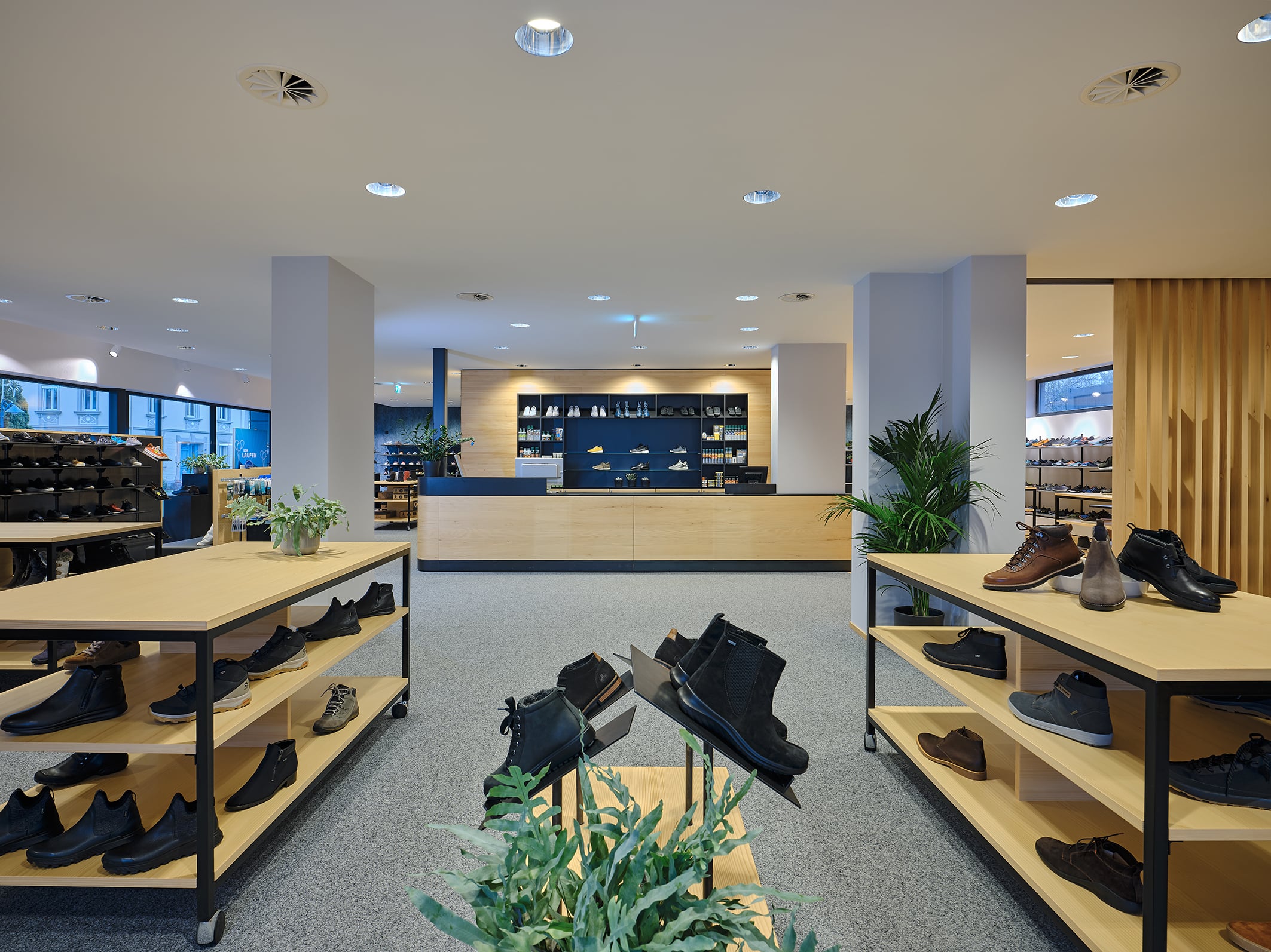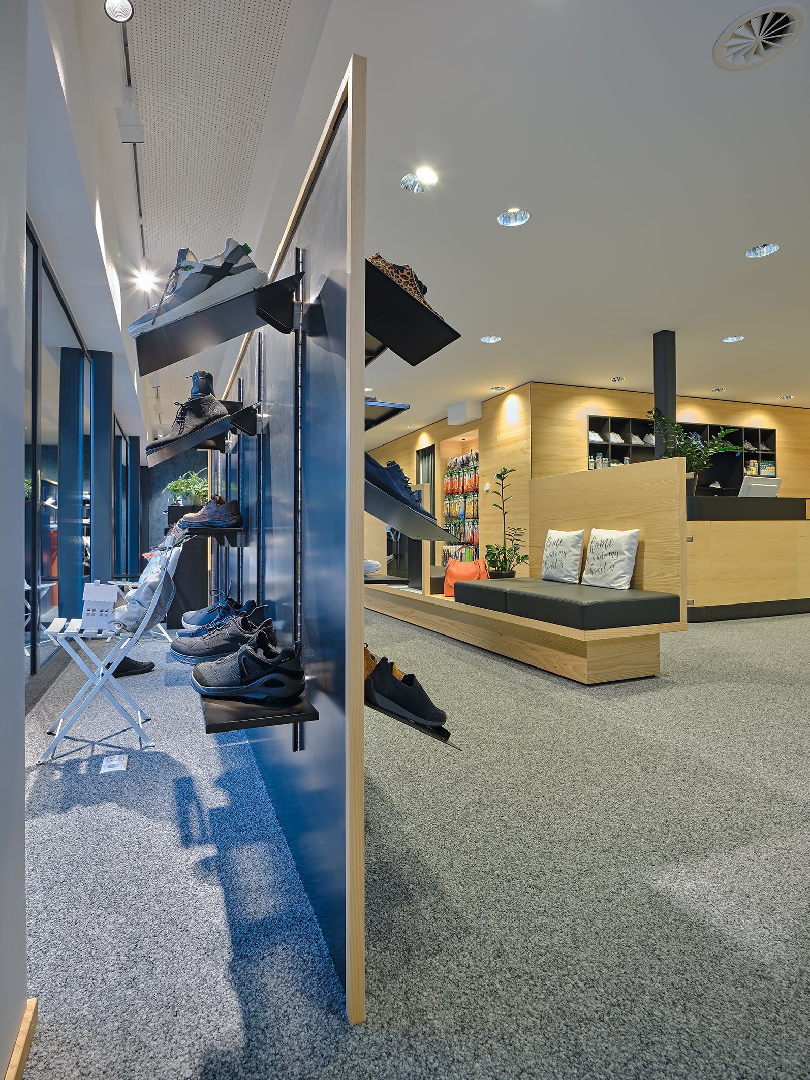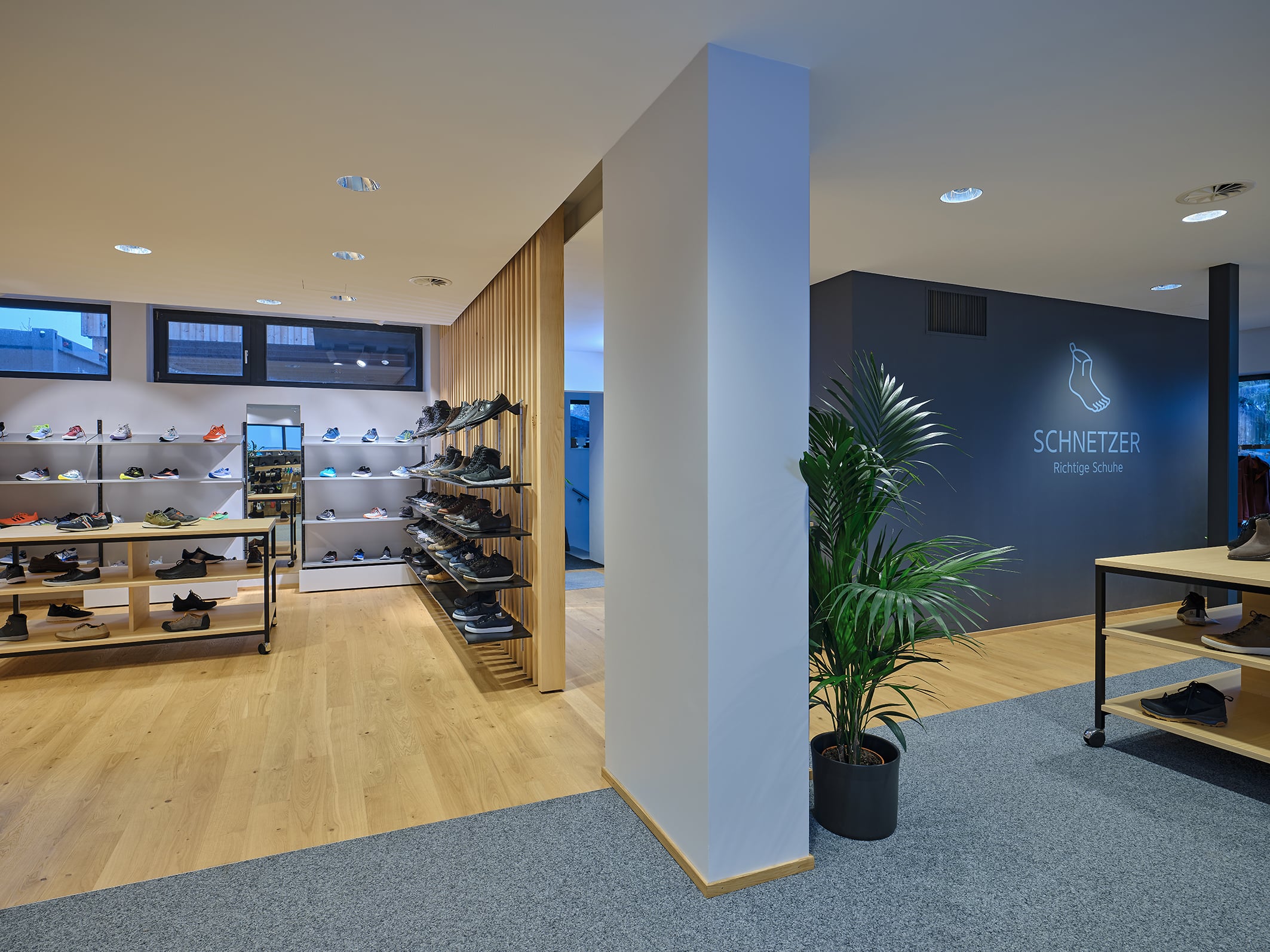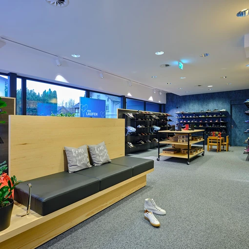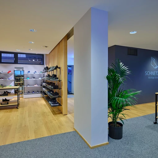 Referenz: Schuh Schnetzer | Wo: 6844 Altach, Österreich | Verkaufsfläche: mit 280m² | Leistungen: Planung, Produktion und Montage der Geschäftseinrichtung