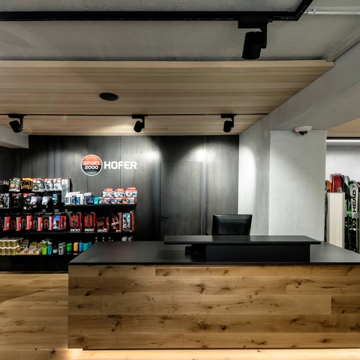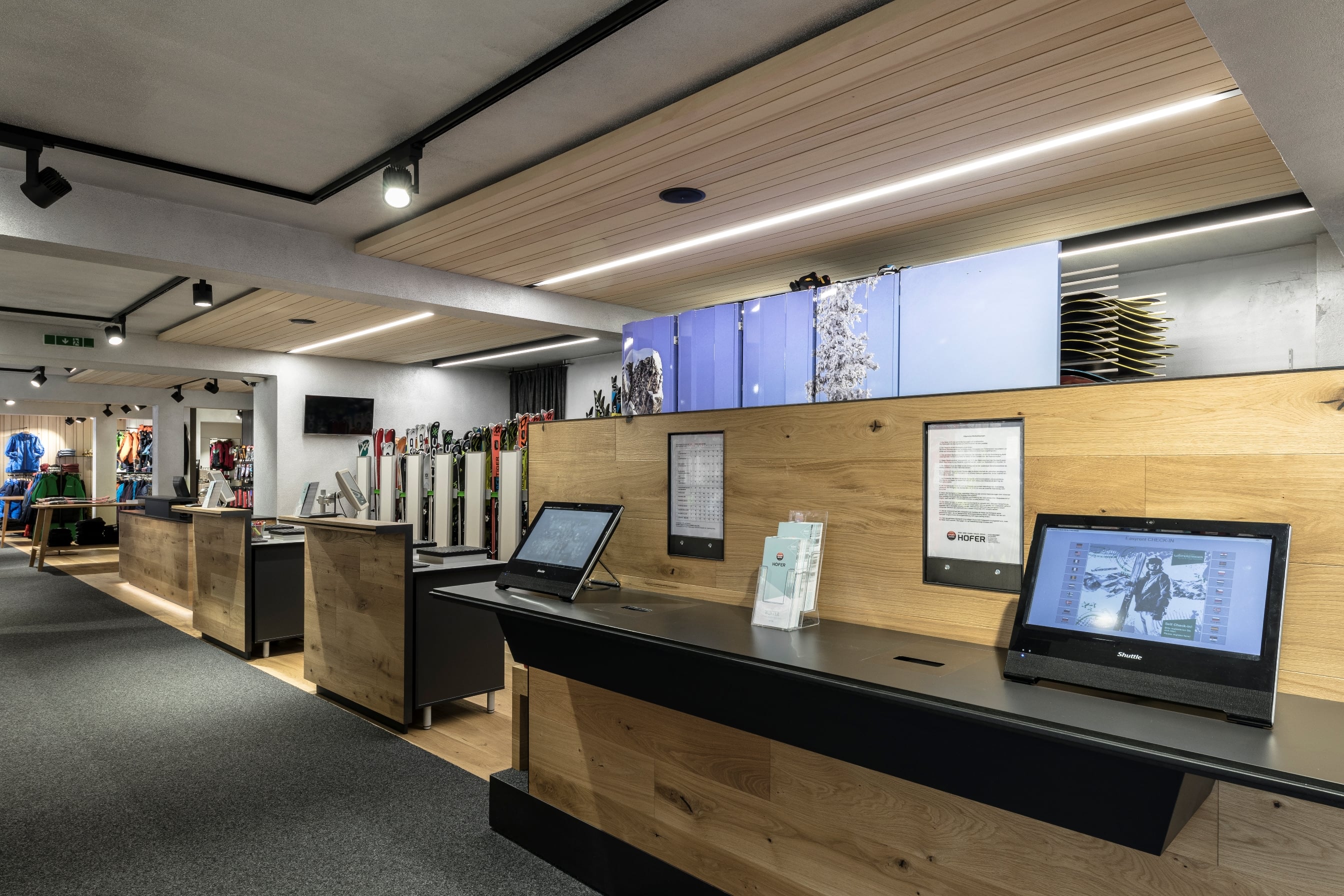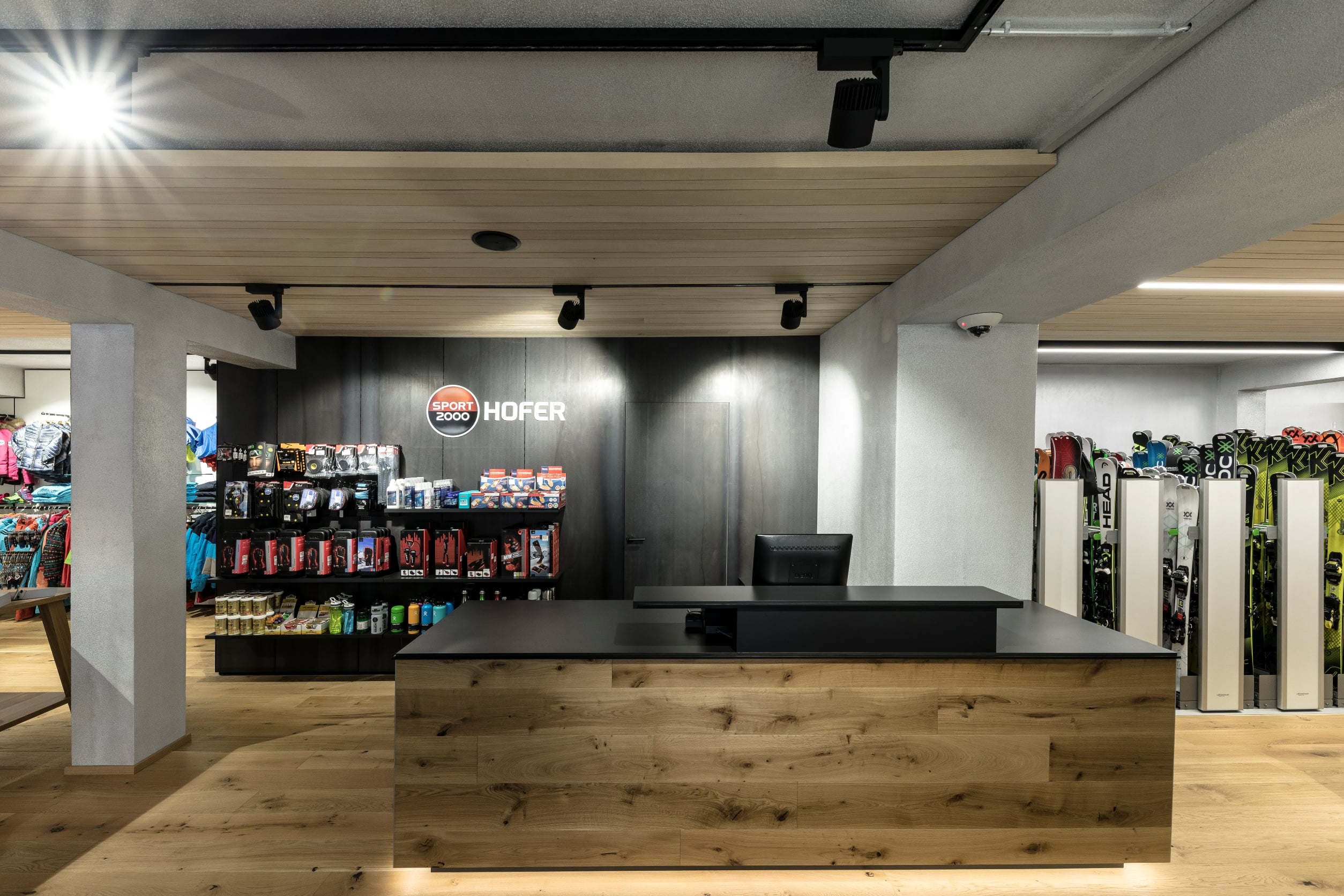 Referenz: Sport 2000 Hofer | Wo: 6167 Neustift im Stubaital, Österreich | Verkaufsfläche: mit 400m² | Leistungen: Planung, Produktion und Montage der Geschäftseinrichtung, Gewerke Ausschreibung, Planung und Begleitung