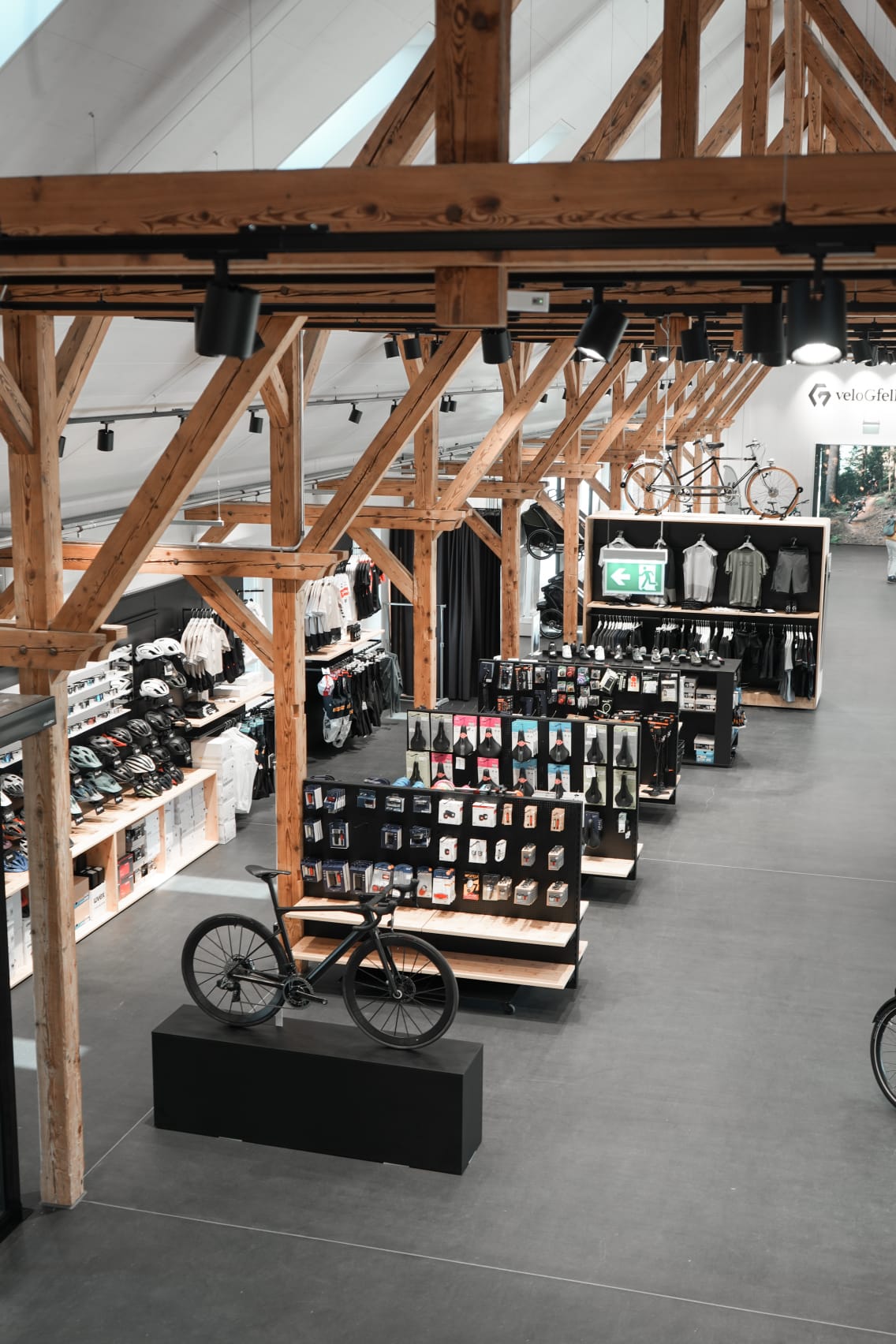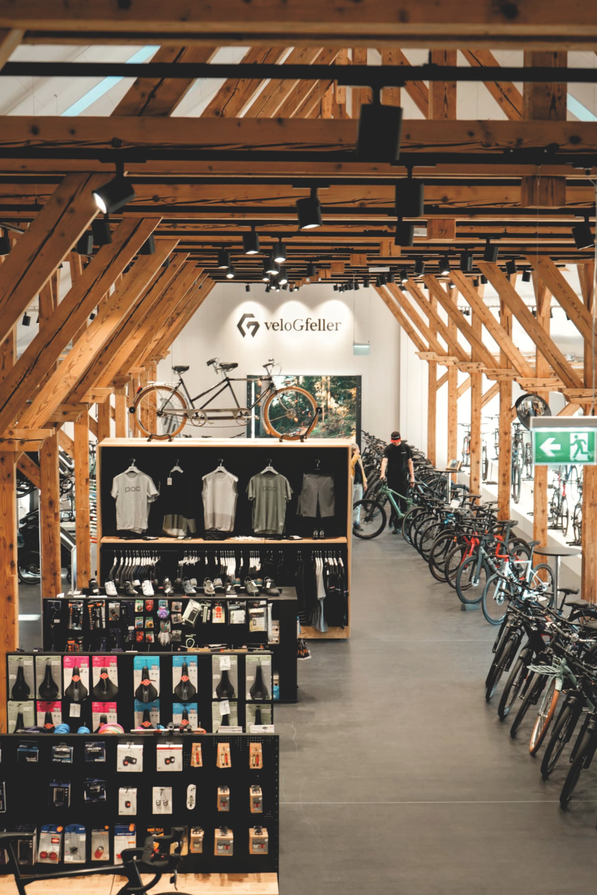 Referenz: Velo Gfeller | Wo: 3072 Ostermundigen , Schweiz | Verkaufsfläche: mit 700m² | Leistungen: Planung, Produktion und Montage der Geschäftseinrichtung, Teilleistung Gewerke Planung und Begleitung